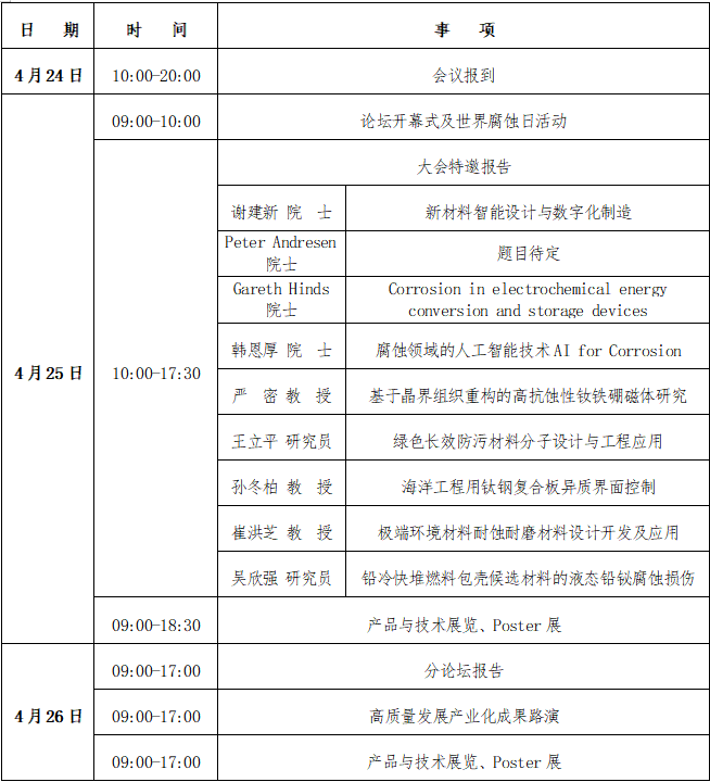 组织单位:中国科学院金属研究所、北京科技大学、华南理工大学、广州大学、广东腐蚀科学与技术创新研究院等。