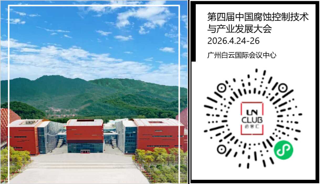 第四届中国腐蚀控制技术与产业发展大会暨世界腐蚀日(中国区)活动将于2026年4月24-26日在广东省广州市举办。本次会议以“防腐科技赋能,驱动工业未来”为主题,由(联合国)世界腐蚀组织(WCO)、腐蚀控制产业技术创新战略联盟、华南理工大学、广东腐蚀科学与技术创新研究院共同主办。