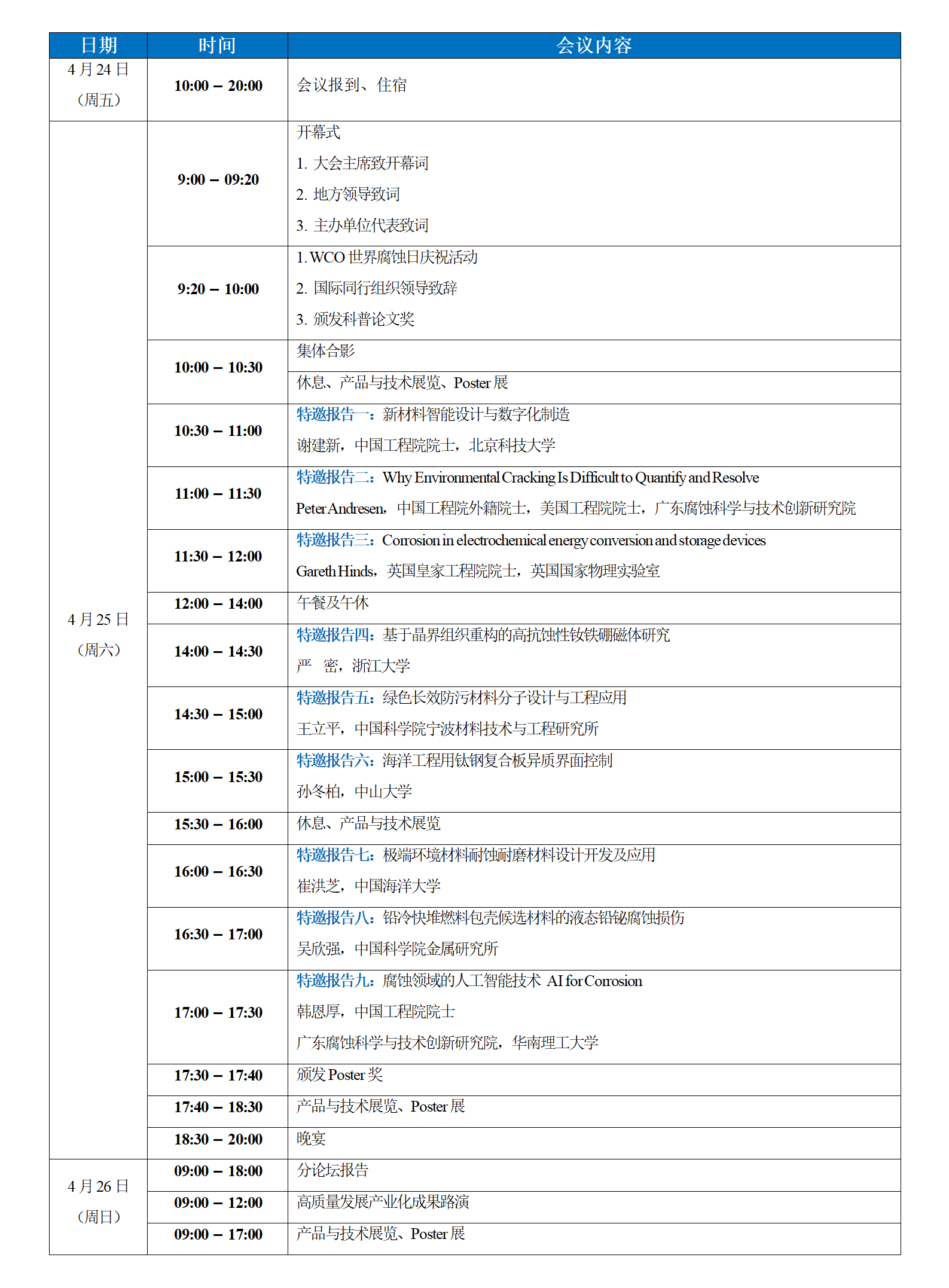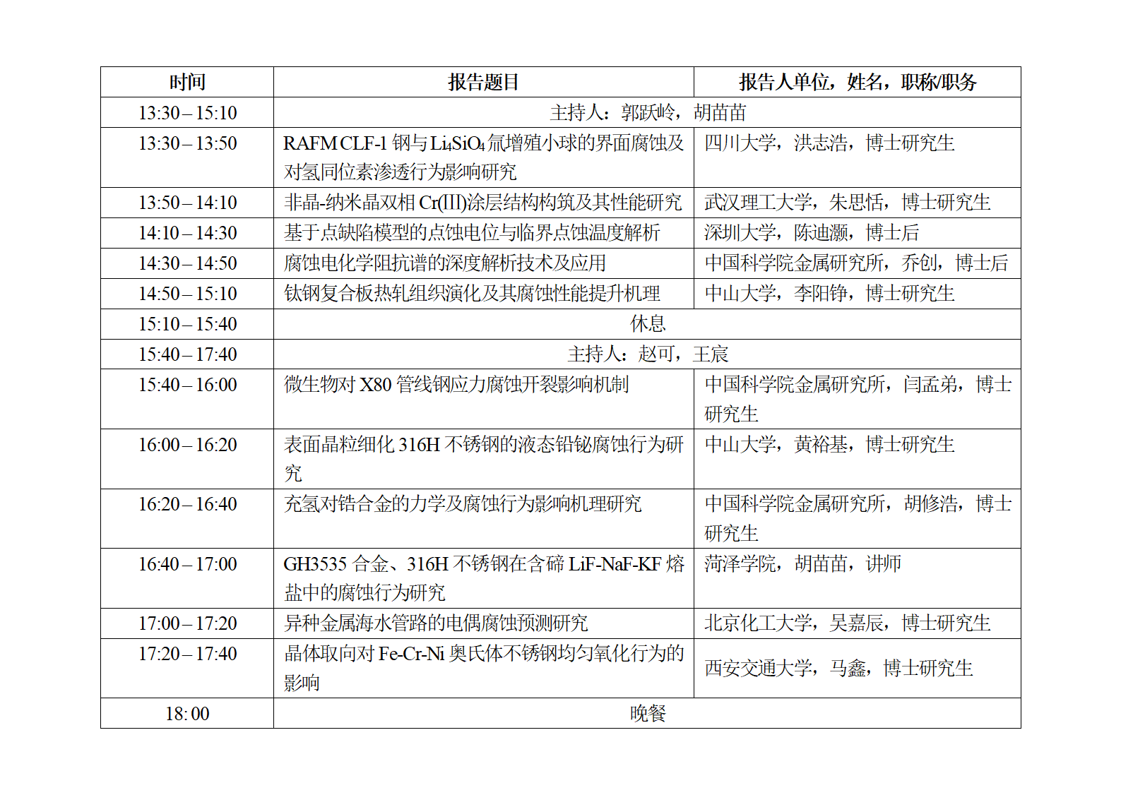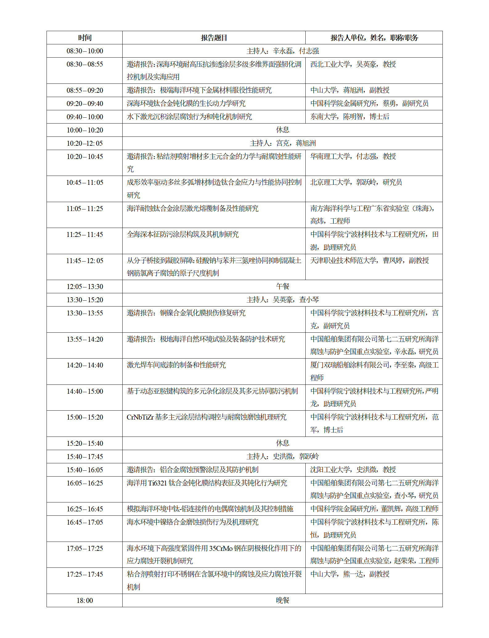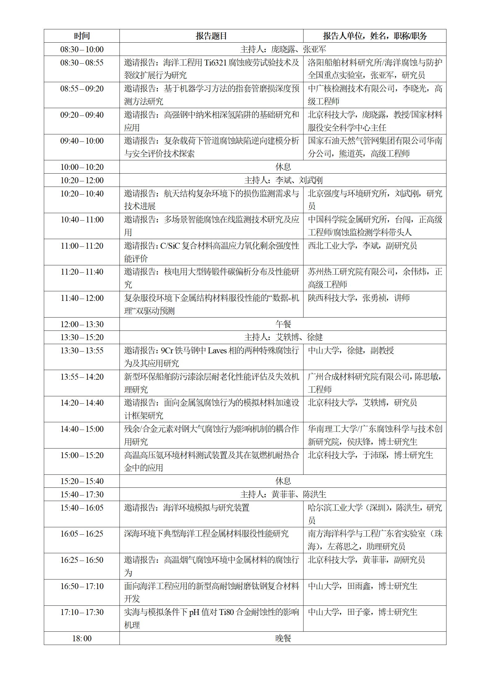 组织单位:中国科学院金属研究所、北京科技大学、华南理工大学、广州大学、广东腐蚀科学与技术创新研究院等。