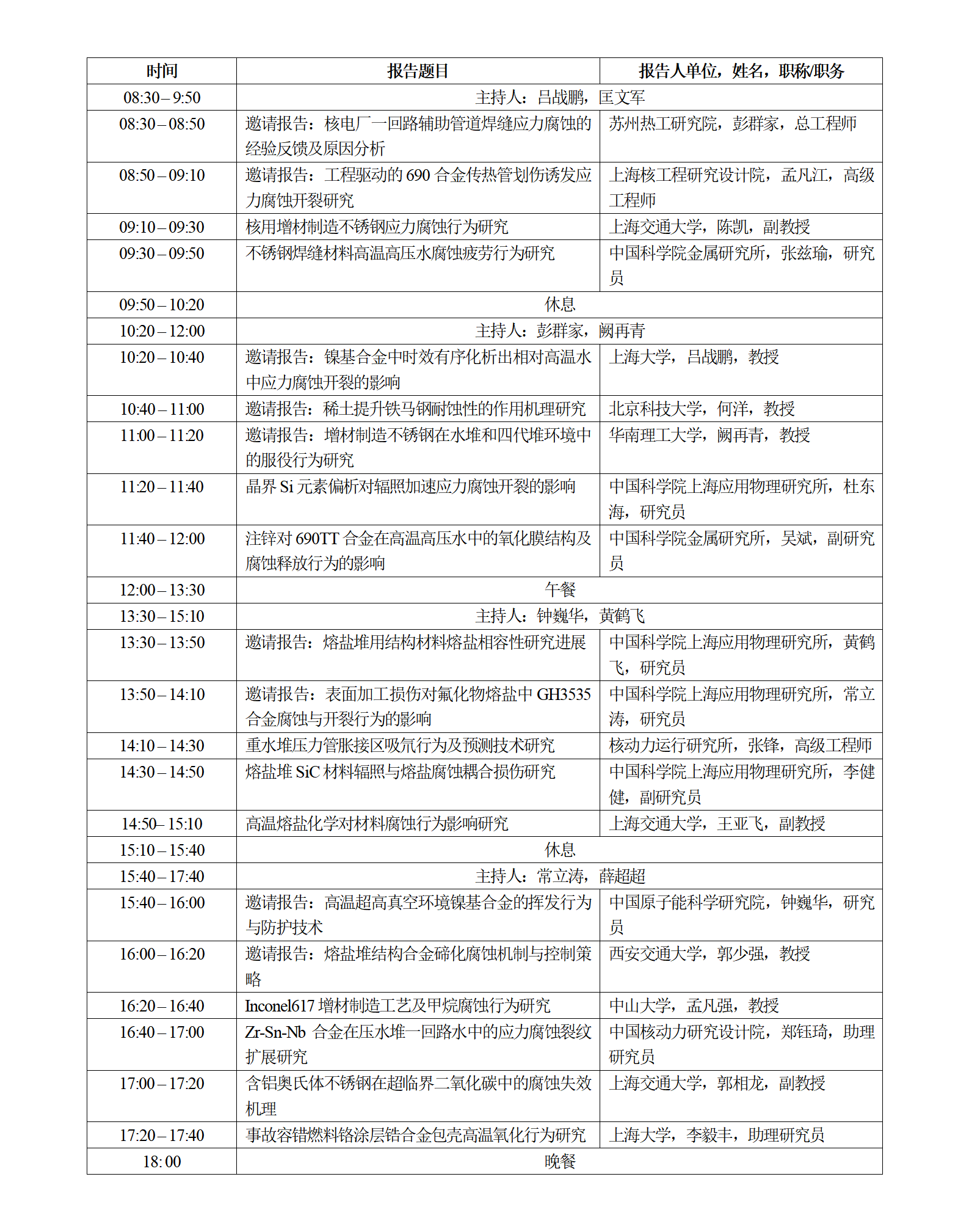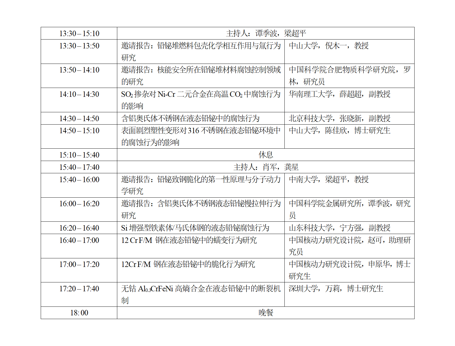 组织单位:华南理工大学、中国科学院金属研究所、中国科学院上海应用物理研究所、中国核动力研究设计院、中广核研究院有限公司、广东腐蚀科学与技术创新研究院等。