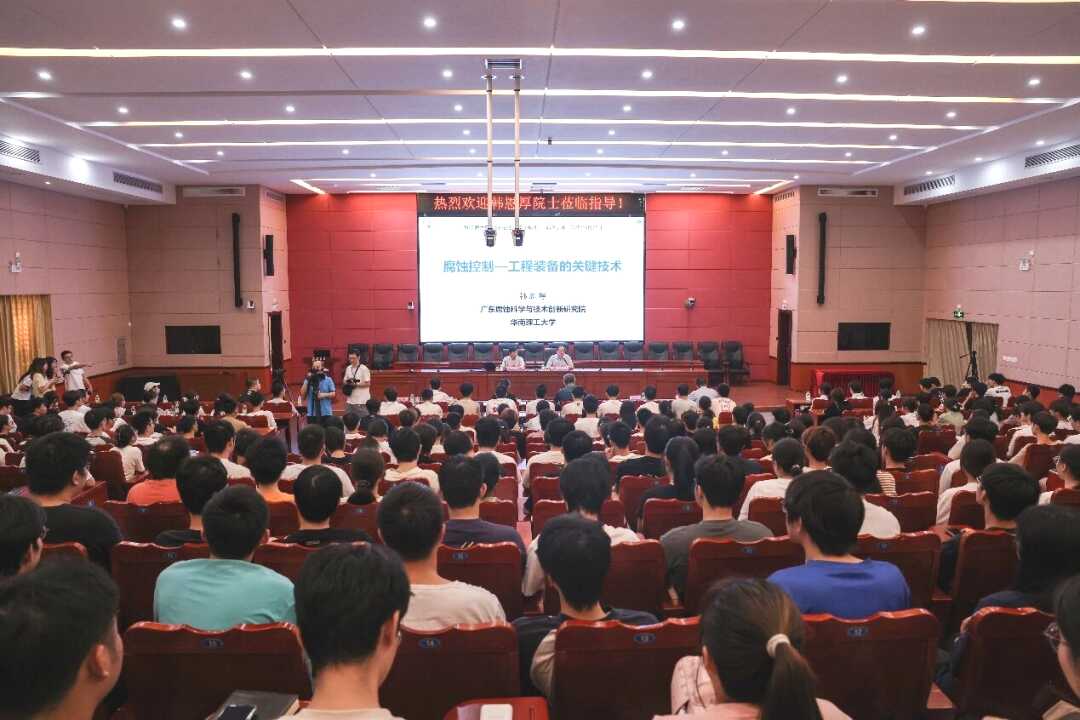 9月17日,嘉应学院百年纪念楼121报告厅内掌声不断、气氛热烈。中国工程院院士、华南理工大学教授、广东腐蚀科学与技术创新研究院院长、广东院士联合会副会长韩恩厚走进嘉应学院,以《腐蚀控制:工程装备的关键技术》为题,为嘉应学院化学与环境学院300余名师生带来一场兼具理论深度与实践价值的高端学术讲座。