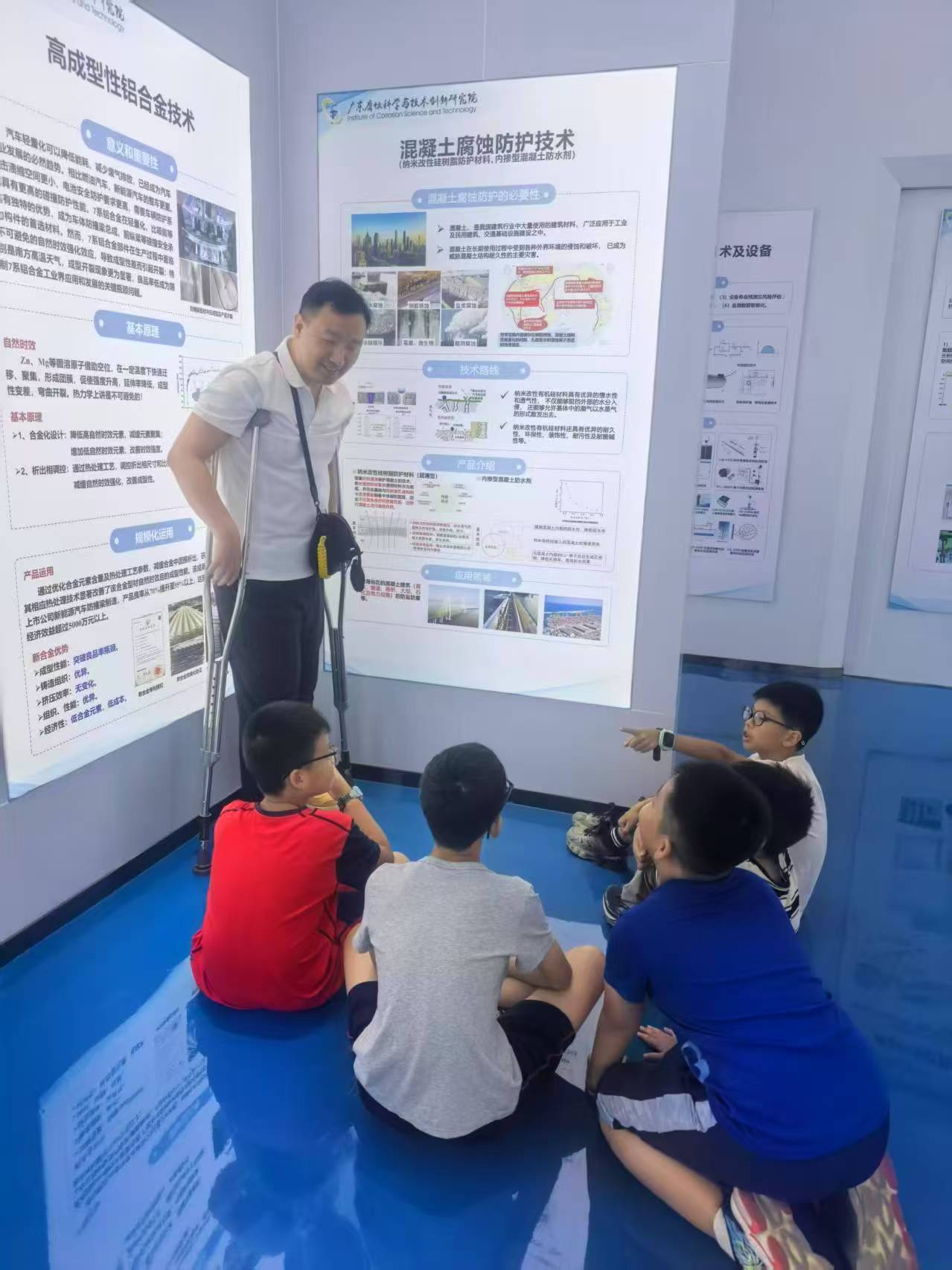 广东腐蚀科学与技术创新研究院(以下简称防腐院)为响应国家号召,广泛开展群众性科普活动,在科普基地常年开放的基础上,推出防腐科普活动季。在活动持续期间,大力对广州各区家庭进行推广,支持各个家庭自发组织研学团来我基地参观研学。2025年10月19日,广州知识城片区家庭自发组织研学团,到防腐院科普基地进行一场“科学思维培养”的旅程。