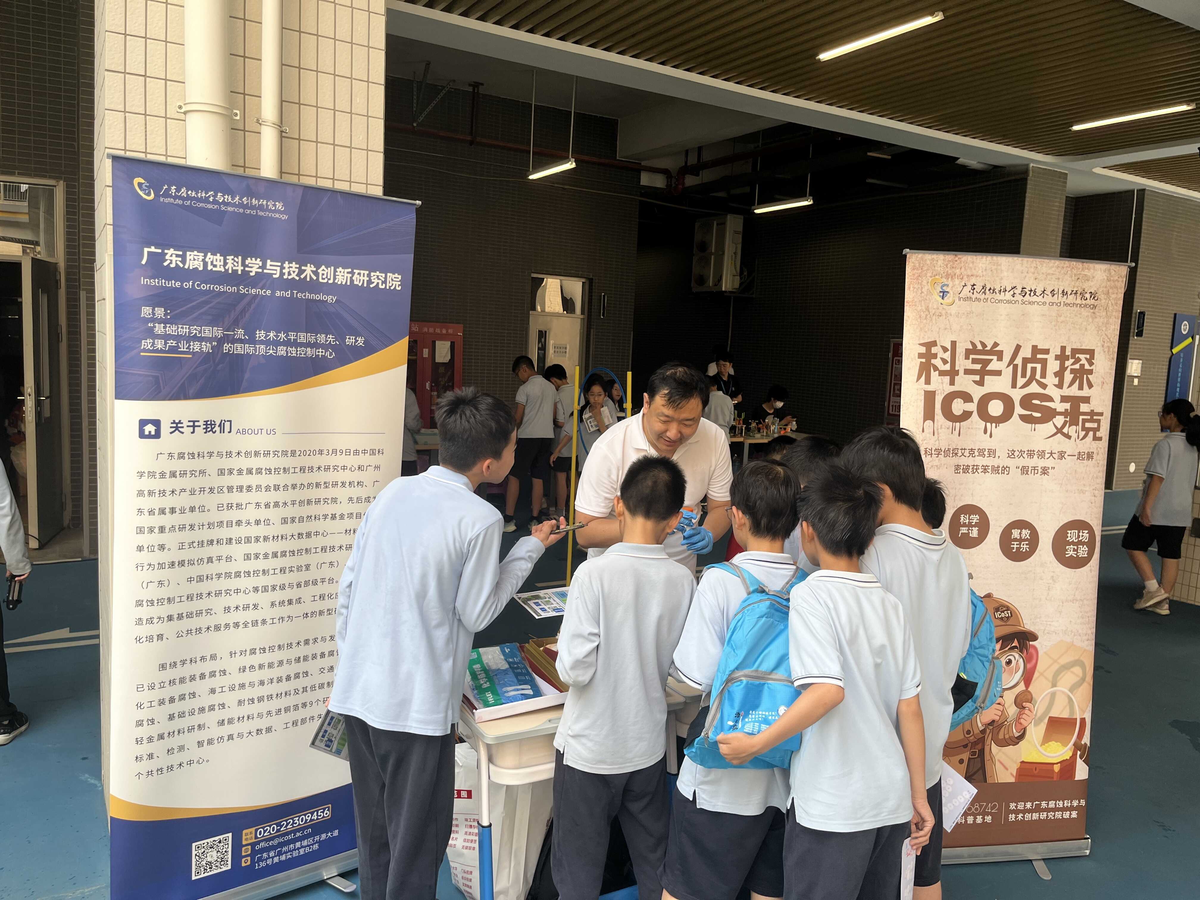 4月10日,广东外语外贸大学附属科学城实验学校以“携手探科学,同心向未来”为主题的科学游园会成功举办。广东腐蚀科学与技术创新研究院(以下简称防腐院)携品牌科普课程“科学侦探艾克”应邀参展,再次赢得学生们的热烈追捧。