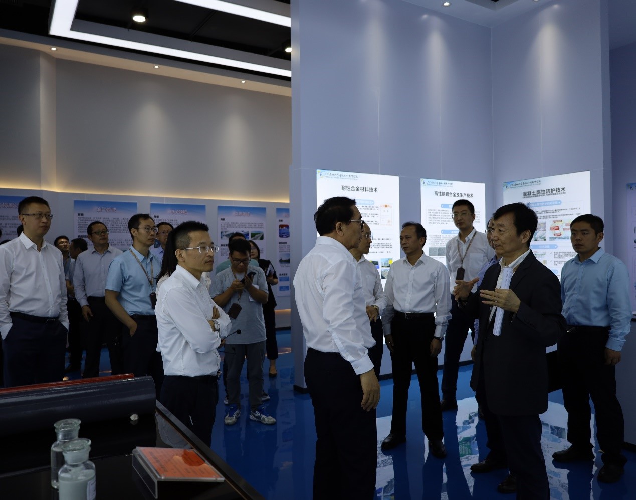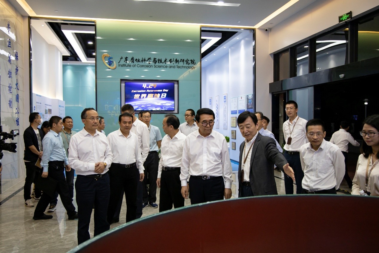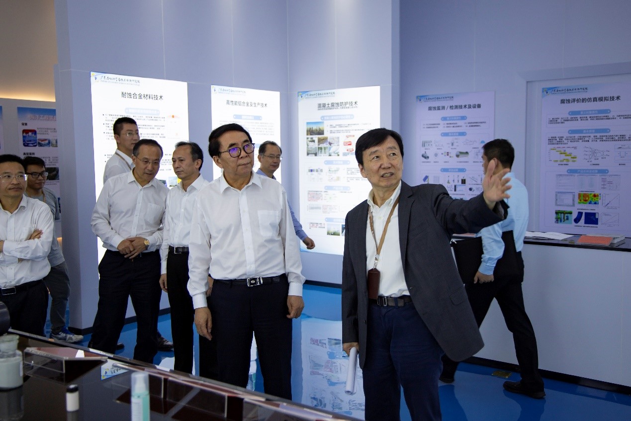 2020年11月21日,中国科学院院长,党组书记白春礼一行到广东腐蚀科学与技术创新研究院(简称“腐创院”)视察指导工作,中国科学院副院长张涛、周琪,中国科学院广州分院院长吴创之、党组书记陈广浩、广东省科技厅厅长龚国平、市委常委、广州开发区书记周亚伟、区长陈勇等领导陪同视察。腐创院院长韩恩厚等接待了白院长一行。